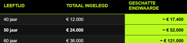 * Schattingen op basis van historisch gemiddeld rendement. Rendementen uit het verleden bieden geen garantie voor de toekomst.